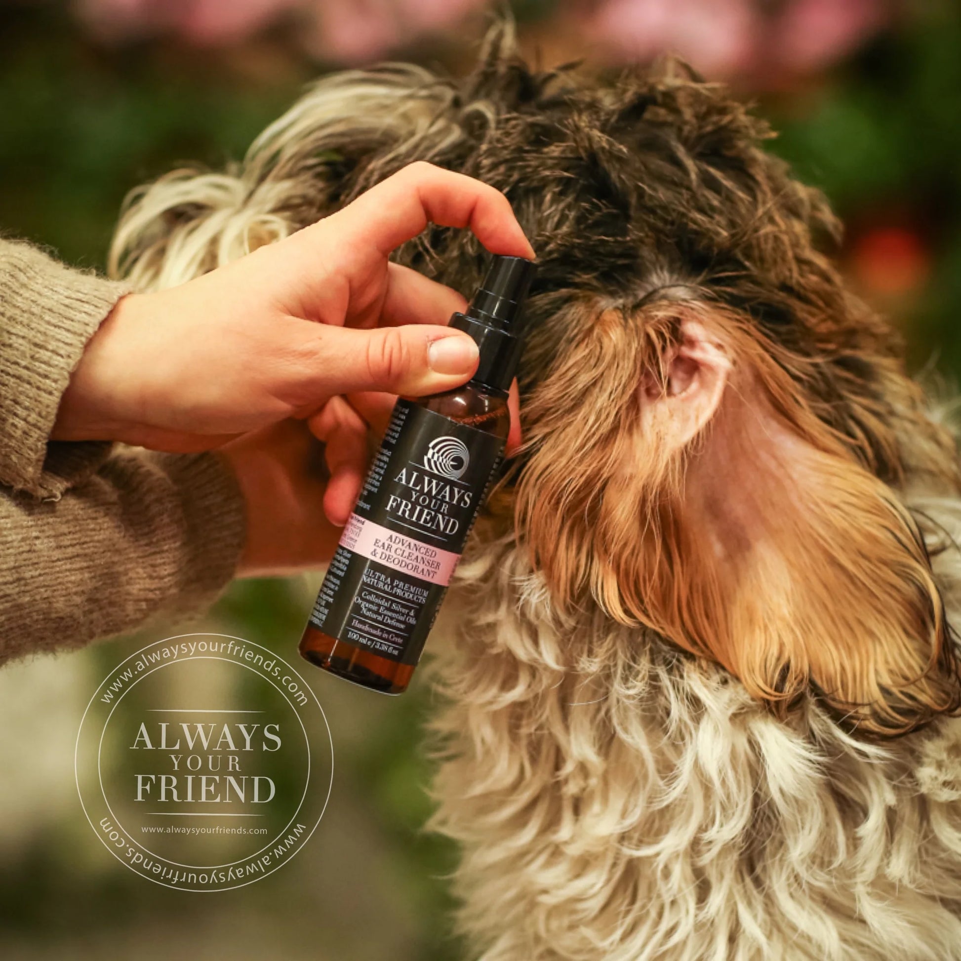 Le Nettoyant Oreilles & Déodorant est une lotion argentée 2 en 1 idéale pour nettoyer les oreilles/le conduit auditif et désodoriser les pattes et la peau.
