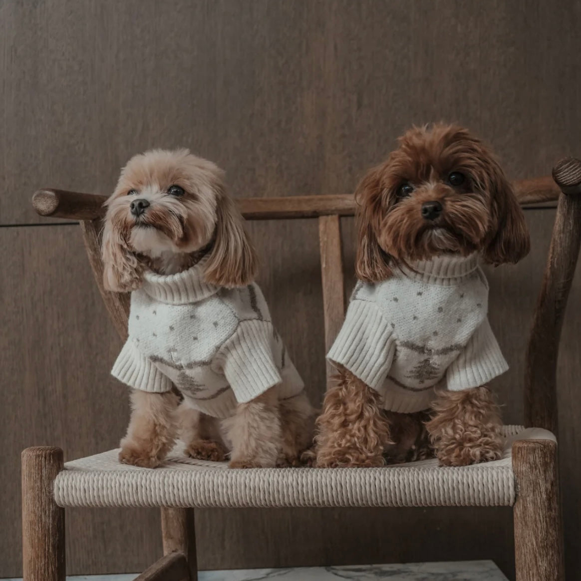 Le pull à col roulé Sapin d’hiver est une pièce intemporelle pensée pour les chiens modernes. Il offre une nouvelle vision des fêtes d’hiver à travers des teintes neutres, élégantes et apaisantes. Tricoté dans des fils doux et de qualité supérieure, il incarne la chaleur, le confort et une touche de magie à chaque promenade.