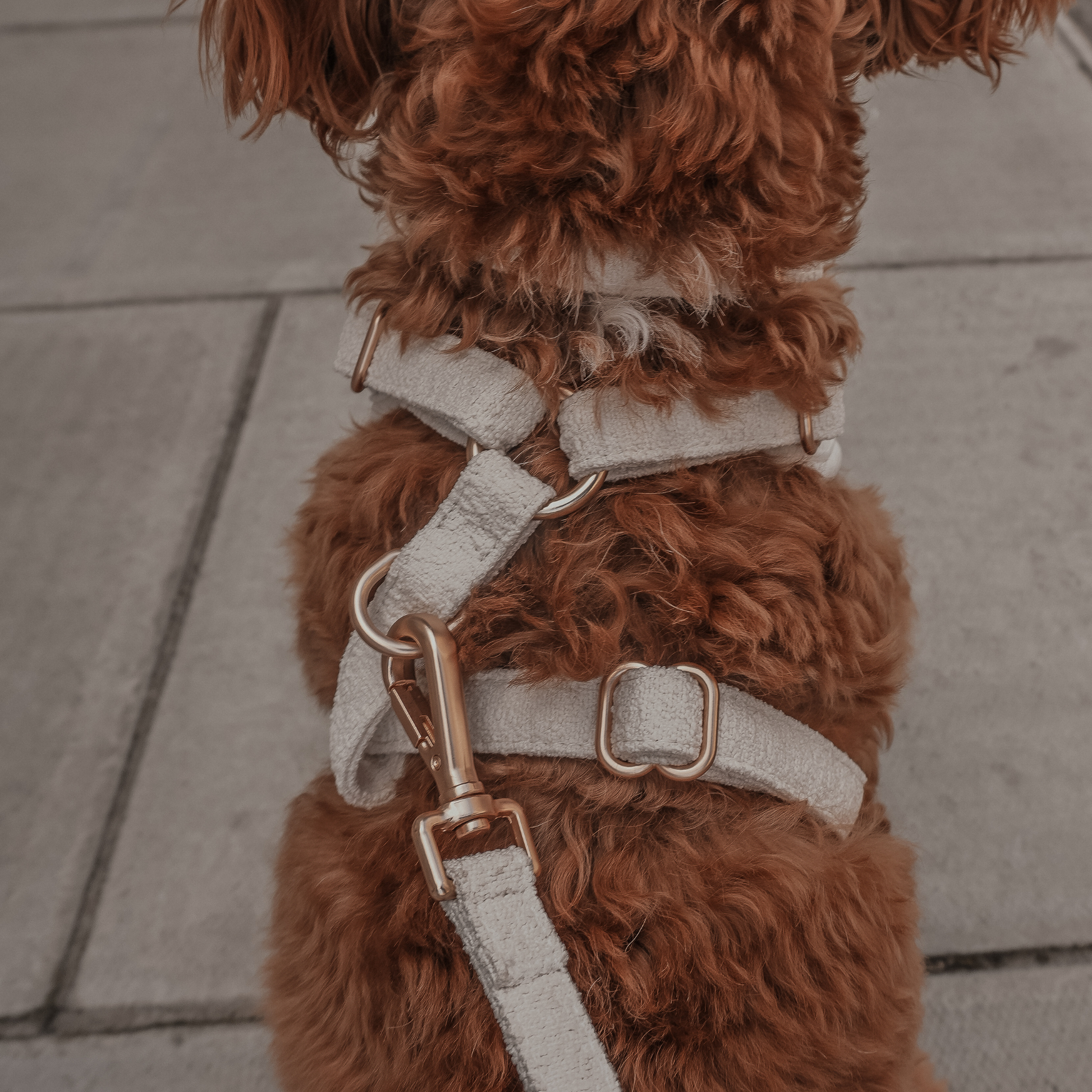Alliant douceur et raffinement, le harnais Marshmallow Bouclé habille votre chien avec style tout en assurant son bien-être. Confectionné dans un tissu bouclé moelleux et texturé, il offre une sensation agréable et un look unique à chaque promenade.