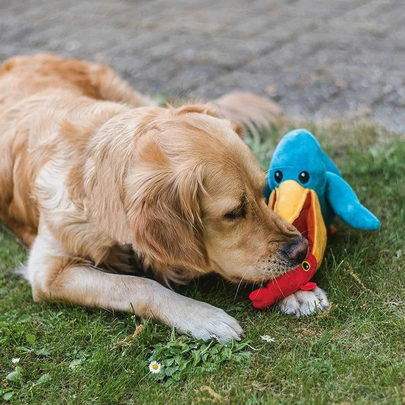 Un grand pélican et un petit poisson rouge qui ferons le bonheur de vos chiens et qui permettra d'occuper et de le stimuler mentalement.
