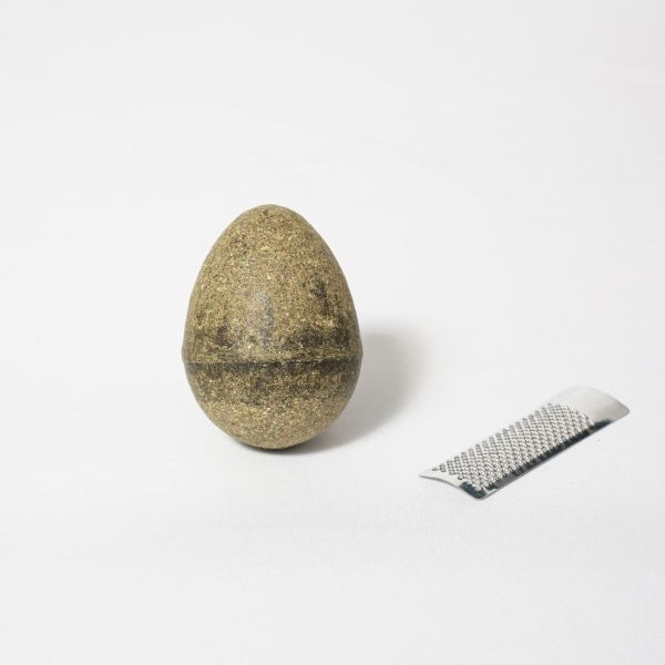 L'oeuf de cataire, 100 % naturelle (la Cataire) livrée avec une râpe pour saupoudrer de la cataire râpée sur les griffoirs, arbres à chat, jouets et tapis.
